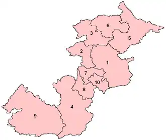The constituencies were created in 1999 with the names and boundaries of Westminster constituencies, as existing in at that time.[3] They cover all of two council areas,[4] the Falkirk council area and the North Lanarkshire council area, and parts of three others, the East Ayrshire council area, the East Dumbartonshire council area and the South Lanarkshire council area.