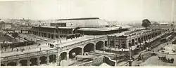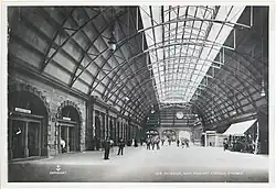 This station (one wooden platform in a corrugated iron shed), called "Sydney Terminal", had Devonshire Street as its northern boundary.[7] It was frequently but unofficially called "Redfern Station",[9] while at that time, the present Redfern Station was officially called "Eveleigh".[10] Although called "Redfern Station", the first and second Sydney Terminals were never actually located in Redfern, being to the north of Cleveland Street, which is Redfern's northern boundary.