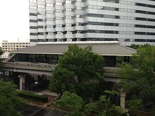 The next stations in the line are James Weldon Johnson Park station to the north, Jefferson station to the west, and San Marco station across the river to the south.[1] Points of interest nearby include the Riverfront Plaza, the Northbank Riverwalk, the Times-Union Center for the Performing Arts, and many businesses.[2]