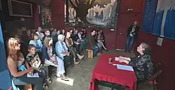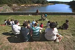 From its inception in 1988, the Centre de l'Imaginaire Arthurien has led in multiple areas. Its eclectic exhibitions include modern works as well as Pre-Raphaelite paintings. It organises (and hosts) spectacles, storytelling,[7] concerts, conferences, guided tours in the forest and educational presentations for school groups. The centre participates in drafting catalogues, educational projects, journées du patrimoine (heritage days)[8] and outreach in schools and universities, assists in documentary research, and compiles bibliographies and iconographies. There are many scholars from different countries among its members.[9]