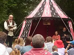 Each year, the Arthurian Centre's opening season is marked by events, some of which have now been held for more than ten years. The three principal event are the Pentecôte du Roi Arthur, the Rencontres de l'imaginaire de Brocéliande and the Semaine Du dragon. The Château de Comper also hosts conjurers and illusionists during the Samedis de la Magie (Magic Saturdays).[37] The medieval market in August is an occasion to welcome craftspeople and organise a Kermesse.[38]