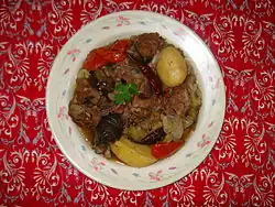 Chanakhi (Georgian: ჩანახი) is a traditional Georgian[1][2][3][4][5] dish of lamb stew with tomatoes, aubergines, potatoes, greens, and garlic.