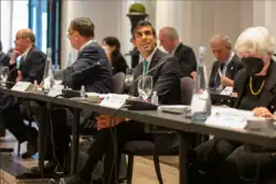 Sunak hosted a G7 summit in London in June 2021.[72] A tax reform agreement was signed, which in principle sought to establish a global minimum tax on multinationals and online technology companies.[72] In October 2021, the OECD signed an accord to join the tax reform plan.[73]