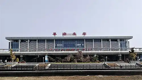 Chaohu East railway station (Chinese: 巢湖东站; pinyin: Cháohú Dōng Zhàn) is a railway station in Chaohu, Hefei, Anhui.[1] This station commenced services with Hefei–Fuzhou high-speed railway (part of Beijing–Taipei high-speed rail corridor) on June 28, 2015.