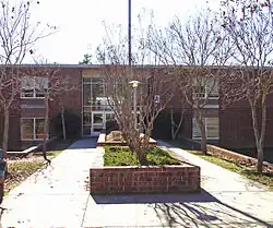 Chapel Hill High School's original school building was located on West Franklin Street, and housed the school for white students starting in 1916. That same year, Orange County Training School (which later became Lincoln High School), opened at 750 Merritt Mill Road for black students.[8] In 1936, a new high school building for Chapel Hill High was constructed on Columbia Street, where the UNC Eshelman School of Pharmacy is now located. This school building burnt down in 1942, and wasn't rebuilt until after World War II. Classes would meet at various locations until a newly constructed school building opened back on West Franklin Street in 1947.[9]