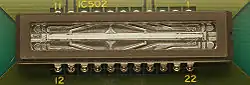 In the late 1960s, Willard Boyle and George E. Smith at Bell Labs were researching MOS technology while working on semiconductor bubble memory. They realized that an electric charge was the analog of the magnetic bubble and that it could be stored on a tiny MOS capacitor. As it was fairly straightforward to fabricate a series of MOS capacitors in a row, they connected a suitable voltage to them so that the charge could be stepped along from one to the next.[3] This led to the invention of the charge-coupled device by Boyle and Smith in 1969. They conceived of the design of what they termed, in their notebook, "Charge 'Bubble' Devices".[5][6]