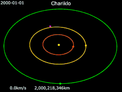 - ^ "Horizons Batch for 10199 Chariklo (1997 CU26) from 2066-Jun-25 to 2066-Jun-27". JPL Horizons On-Line Ephemeris System. Jet Propulsion Laboratory. Retrieved 25 June 2022. (Perihelion occurs when deldot changes from negative to positive. Uncertainty in time of perihelion is 1-sigma from JPL Small-Body Database.)