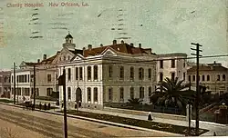 In 1832, a fifth hospital was built on Common Street (modern Tulane Avenue) between Howard Street (modern LaSalle Street), Robertson Street, and Gravier Street, on the edge of the Faubourg St. Marie.[4] This hospital came under the administration of the Sisters of Charity in 1834,[5] who would run the hospital for the next century.