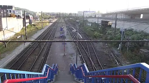 Charleroi-West railway station (French: Gare de Charleroi-Ouest; Dutch: Station Charleroi-West)[a] is a secondary railway station serving Charleroi, Hainaut, Belgium. It is one of two railway stations located in downtown Charleroi, the other one being the much larger Charleroi-Central railway station. It is operated by the National Railway Company of Belgium (SNCB/NMBS).