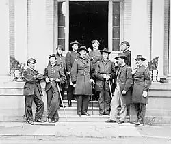 On January 13, 1866, President Andrew Johnson nominated Devens for the award of the honorary grade of brevet major general, United States Volunteers, to rank from April 3, 1865, for services during the Richmond campaign,[3] and the U.S. Senate confirmed the award on March 12, 1866.[4] Devens remained in the army for a year as commander of the military district of Charleston, South Carolina,[1] before mustering out and returning home. He later served as the fifth Commander-in-Chief of the Grand Army of the Republic from 1873 to 1875 and was also a veteran companion of the Military Order of the Loyal Legion of the United States.