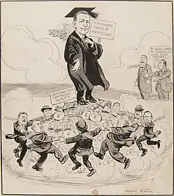 Merriam joined the faculty at the University of Chicago in 1900 as the first member of the political science faculty.[4] He authored A History of American Political Theories in 1903, a notable analysis of American political movements which strongly supported the emerging Progressive movement.[4][13] He moved up quickly in the department, reached the rank of full Professor in 1911, and served as chairman of the department of political science from 1911 until his retirement. From 1907 to 1911, he served as chairman of the College of Commerce and Administration (the precursor to the Booth School of Business).[14]