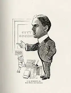 His son Charles Hiram Burnett Jr. was a Seattle City Councilor, President of the Seattle City Council and Acting Mayor of Seattle. Burnett officiated at the grand opening of Pike Place Market with fellow City Councilor Thomas P. Revelle.