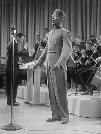 As Holland's opportunities to succeed as an African American in the field of classical music were limited,[2][4] he moved to Europe in 1949 and—after a short stay in Sweden—settled in Paris. He made his debut as Monostatos in Mozart's The Magic Flute at the Palais Garnier in 1954 and appeared in the role of Nadir in Bizet's Les pêcheurs de perles at the Salle Favart in 1955.[5][6] He also sang on French radio and television, appeared in the title role of Verdi's Otello in London,[2] and made guest appearances in opera roles and song recitals in Europe, Australia, New Zealand and Canada.[3] In 1959, Holland worked in the Netherlands for the first time.[7] His roles included Alvaro in Verdi's La forza del destino, the title role in Gounod's Faust and Radamès in Verdi's Aida.[6]