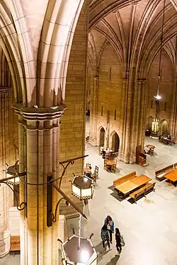 Klauder considered his greatest achievement to be the Commons Room of the Cathedral of Learning. The Commons Room is a fifteenth-century English perpendicular Gothic-style hall that covers half an acre (2,000 m2) and extends upwards four stories, reaching 52 feet (16 m) tall.[3]