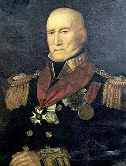 - ^ Full dates of promotion: rear-admiral of the blue 10 January 1837, rear-admiral of the white 23 November 1841, rear-admiral of the red 9 November 1846, vice-admiral of the blue 17 December 1847, vice-admiral of the white 9 October 1849.[79]