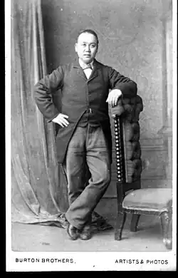 - ^ Otago Witness, 3 Jan 1874, p.4. The other Chinese merchants were William Ah Chew, Kum Goon Lee, Sun War On, Lo Keong, Chin Shing and Mee Wah.