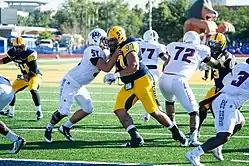 ![]() Tuaau playing for A&M–Commerce in 2014 | |