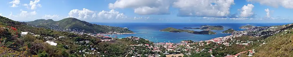 The subdistrict of Charlotte Amalie is one of the seven administrative subdistricts located on the island of St. Thomas. It serves as the modern day capital of the U.S. Virgin Islands. It is also the largest population center and the largest settlement in the entire Virgin Islands Archipelago. In 2020, it had a population of 14,477.[2] It is located in south-central part of the island of St. Thomas surrounding the Charlotte Amalie Harbor on three sides.