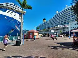 The cruise ports of the harbor form one of the busiest cruise destinations in the Caribbean. In 2023, the "Port of St. Thomas" ranked as the 13th busiest singular location* cruise port by passenger traffic in the world. It was the 5th busiest cruise port in the United States behind only Port of Miami, Port Canaveral, Port Everglades and Port of Galveston.[26] It was 3rd busiest in the Caribbean Basin behind only Cozumel and George Town.[27] The St. Thomas cruise port was the 3rd singular location* busisest in the West Indies behind Nassau and George Town.[27]