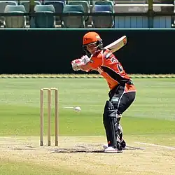 In 2014–15, Edwards played for Western Australia in the Women's National Cricket League and the Australian Women's Twenty20 Cup.[1] She was the side's leading run-scorer in both competitions.[57][58] Edwards also captained the side, and at the end of the season was named the side's player of the year in both competitions, and awarded the Zoe Goss Medal, for being the outstanding female cricketer in Western Australia.[59][60] The following season, she played in the inaugural season of the Women's Big Bash League for Perth Scorchers.[59] She was her side's leading run-scorer, and the second-highest across the whole competition, with 462 runs including four half-centuries.[61]
