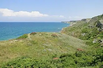 The Charming Harbor National Nature Park or Tarkhankut National Park (Ukrainian: Національний природний парк «Чарівна гавань», romanized: Natsionalnyi pryrodnyi park «Charivna havan'»; Russian: Природный парк «Тарханкутский», romanized: Pryrodny park «Tarkhankutsky») covers a coastal sector of the Tarkhankut Peninsula (itself a part of the Crimean peninsula) on the Black Sea. The national park protects and exhibits steppe landscape as it descends to the seacoast in a semi-arid environment and with dramatic cliffs and rock formations. The park is in the administrative district of Chornomorske Raion.[1][2]