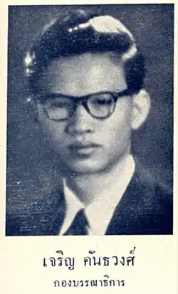 - ^ "เปิดประวัติ "เจริญ คันธวงศ์" อดีตรัฐมนตรี เจ้าของฉายา คนดีศรีสภา". prachachat.net (in Thai). 4 May 2022. Retrieved 9 May 2022.