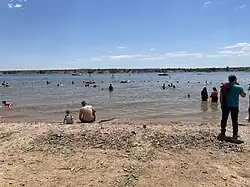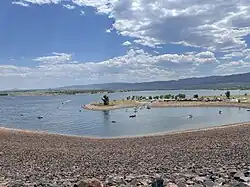The Chatfield Reservoir Reallocation Project, a US$171 million construction project that took place between 2017 and 2020, created an additional 20,600 acre-feet (25,400,000 cubic meters) of water storage in the reservoir, raising its level by about 12 feet (3.7 meters). The project involved moving some of the surrounding park's facilities back from the new, higher lake levels.[4][5][6]