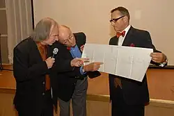 - Alexander Chelishchev–Krasnoselsky (1881–1921), his son, a mathematician and composer from the Argonauts circle;[13] after the revolution, he worked as a taper in the cinema at the Rybinsk railway station; wives – Yadviga Maximovna Studenitskaya and Maria Luarsabovna Abuladze (1884–1978), student of Vasily Safonov, founder of the children's music school in Rybinsk, where a memorial plaque commemorates her memory.[14][15][16]