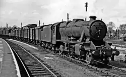 To the west of Malvern Road lay several loop sidings serving a two-road engine shed and coaling stage. Access to these facilities was controlled by two signal boxes - Malvern Road East to the north, and Malvern Road West to the south.[3] The East box was opened on 15 July 1906 and had 49 levers; it had replaced the Bayshill signal box which had controlled access to a locomotive shed demolished when the line was extended to Honeybourne.[3] The West box was open by June 1908 and had 37 levers; it replaced a temporary box dating from August 1906.[7] The station saw very little goods traffic as most were handled at St. James; a 15-ton weighbridge was nevertheless provided in the yard.[7]