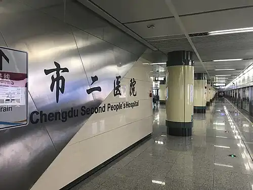 Chengdu Second People's Hospital (Chinese: 市二医院) is a transfer station on Line 3 and Line 4 of the Chengdu Metro in China.[1][2]