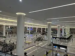 Terminal 2 serves domestic flights while Terminal 1 serves mostly international flights, though it also serves some domestic flights.[12] The domestic section of Terminal 1 is connected to Terminal 2 via an Innovia automated people mover (APM) for transferring passengers arriving on international flights with domestic connections.[13][14]