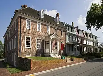 Chestertown Historic District is a historic district in Chestertown, Maryland. It was listed on the National Register of Historic Places and designated a National Historic Landmark in 1970, and its area was increased in 1984.[2][1] The town on the Chester River, became the chief port for tobacco and wheat on the Eastern Shore of Maryland between 1750 and 1790. The port declined thereafter, as Baltimore became the major port for such activity. In consequence, Chestertown acquired a collection of more than fifty Georgian style town houses. The 18th-century residential area survived without harm a 1910 fire that destroyed the central business district of Chestertown.[3]