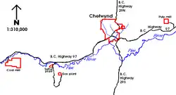 - ^ Nielsen, Mark (18 October 2001). "Chetwynd Pulp Mill Shut Down". Peace River Block Daily News. Archived from the original on 27 September 2007. Retrieved 10 October 2007.