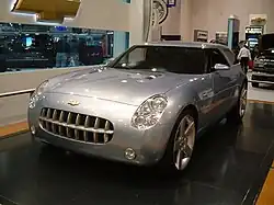 To commemorate the 50th anniversary of the Motorama concept, a Chevrolet Nomad concept was released for the 2004 Detroit Auto Show.[36][37][38] While again a 2+2 wagon, the 2004 Nomad was far smaller than its 1999 namesake, at only 155.5 inches long.[39] The vehicle derived multiple design themes from the original Corvette Nomad, including its grille, headlight shape (trading screened openings for composite lenses), and forward-sloping B-pillar. Sharing the GM Kappa platform with the Pontiac Solstice, the four-seat Nomad included a sliding load floor and removable roof panel to aid loading of cargo.[36]