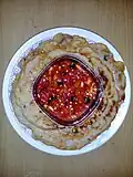 Dishes like Chila and Phara are favourites. They are made with rice flour and eaten with spicy or tangy chutney of tomato, chilli and coriander. Chila is made by making a thick mixture of water and rice flour and then made like a plain dosa. On the therapy side phara is made by leftover rice and rice flour by making a dough and then make cylindrical shapes and giving tadka with jeera, mustard, curry leaves, tomato, turmeric, salt and chili. People of Chhattisgarh do not waste food. People eat Baasi here. It is left over rice dipped in water and curd and eaten with chutney.[8]