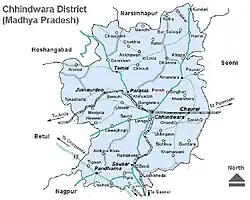 ![]() Location of Chhindwara district in Madhya Pradesh | |