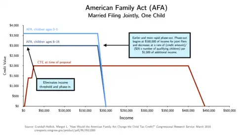 - ^ a b Crandall-Hollick, Margot L. (March 26, 2019). "How Would the American Family Act Change the Child Tax Credit?" (PDF). Congressional Research Service. Archived (PDF) from the original on October 19, 2020. Retrieved December 2, 2021.