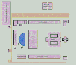 The fair took place on what is now the Quinta Normal Park with a central permanent palace, which is now the Chilean National Museum of Natural History).[4] There were two long buildings, which formed the machinery gallery and the Rose Innes pavilion, housing threshing machines, a restaurant and a pavilion each for Belgium and France.[4]