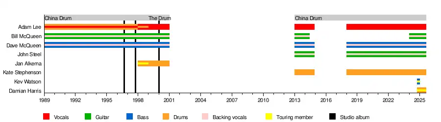 - Adam Lee – vocals (1989–2000, 2013–2014, 2018–present), drums (1989–1999)