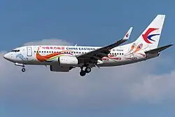 On the afternoon of 1 April 2013, China's 1000th Boeing passenger plane, registered B-5756, landed at Kunming Changshui International Airport and settled in with China Eastern Yunnan Airlines. The fuselage of the plane was painted with the purple peacock livery, and the words "1000TH BOEING AIRPLANE FOR CHINA" was specially printed on the front of the fuselage.[8]