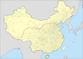 China National Highway 109 connects Beijing with Lhasa. It runs westwards from Beijing via Datong, Yinchuan and Xining to Golmud before turning southwest to Lhasa. The portion of the highway from Xining to Lhasa is known as the Qinghai-Tibet Highway.[1] The total length of the route is 3,901 km.