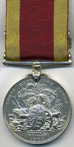- ^ "China War Medal 1900". www.onlinemedals.co.uk. Online Medals. Archived from the original on 22 September 2021. Retrieved 18 September 2024.