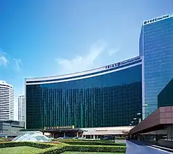 The China World Hotel, Beijing (Chinese: 中国大饭店) is a five-star hotel attached to the China World Mall and next to The China World Trade Center in Chaoyang District, the central business district of Beijing, China. It is operated by the Hong Kong–based Shangri-La Hotels and Resorts group (Chinese: 香格里拉酒店集團).