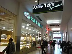 Due to the increase of Chinese in Vancouver, by 1994 many Vancouver supermarkets sold Chinese food items, and ethnic Chinese and non-ethnic Chinese purchased these items.[96] T & T Supermarket was established in 1993 by Cindy Lee and her husband Jack. T&T became the largest Asian supermarket chain in Canada. As of 2009 of it has eight stores in the Vancouver area.[97]