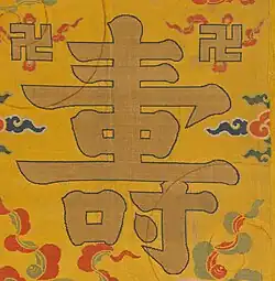Shou《壽》means longevity.[2][43]: 179 [17] The stylized character of shou can also be used to decorate women's garments.[21]
