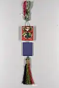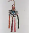 Chinese knotting, also known as zhongguo jie (Chinese: 中國結; pinyin: Zhōngguó jié), is a Chinese folk art with ties to Buddhism and Taoism.[1] A Chinese knot is made from a single length of cord that is woven into different shapes, with each shape having a symbolic meaning.[2] The most common color used in Chinese knotting is red, a color associated with luck in Chinese culture, although any color can be used. Charms, beads, and jade are sometimes incorporated into a Chinese knot. It is believed that Chinese knotting originated for recording information and exchanging messages before writing was commonplace. Traditionally, Chinese knots acted as good-luck charms to ward off evil spirits. Chinese knots are used today to decorate homes during festivities and are also commonly seen in traditional jade jewellery and traditional Chinese clothing.[1]