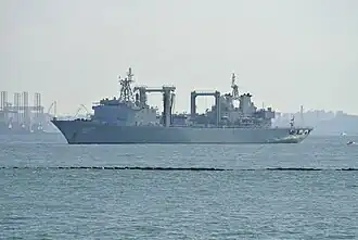 Type 903 integrated supply ship (NATO called Fuchi-class supply ship) is a new large-scale integrated supply ship of the Chinese People's Liberation Army Navy, designed by Zhang Wende. The later improved model is called 903A. The difference with 903 is that the displacement has increased from 20,530 tons to 23,000 tons.[2]