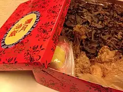 Chinese sticky rice (Chinese: 糯米飯; pinyin: nuòmǐ fàn) is a Chinese and Taiwanese rice dish commonly made from glutinous rice that can include soy sauce, oyster sauce, scallions, cilantro and other ingredients.[1][2][3] It is a common dish in Guangdong and Hong Kong.[4] As Cantonese people believe that glutinous rice has a warming effect on the stomach, this dish is especially popular during the autumn and winter seasons.[5] It is also frequently served as part of a set meal with snake soup.[6]