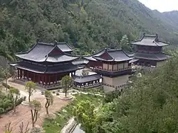 In the cosmology of the Wufang Shangdi, besides the Yellow Deity, the "Black Deity" (黑帝; Hēidì) of the north, winter and Mercury, is portrayed by Sima Qian as Huangdi's grandson, and is himself associated with the north pole stars.[81] The "Green Deity" (蒼帝; Cāngdì) or "Blue Deity" (青帝; Qīngdì), of the east, spring, and identified with Jupiter,[82] is frequently worshipped as the supreme God and its main temple at Mount Tai (the cult centre of all Eastern Peak Temples) is attested as a site for fire sacrifices to the supreme God since prehistoric times.[83]