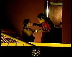 Chithi is an Indian Tamil prime time soap opera that aired on Sun TV. The show premiered on 20 December 1999 and ended on 1 November 2001.[1] It aired Monday through Friday at 9:30pm. The serial stars Radhika Sarathkumar in dual roles, with Sivakumar, Yuvarani, Subhalekha Sudhakar, Hemalatha / Neena and Deepa Venkat. Anju, Latha Sabapathi, Poovilangu Mohan, Ajay Rathnam, Riyaz Khan, Vijay Adhiraj and Tharika play supporting roles.[2]